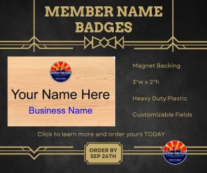 Stand out and represent your business with pride! We’re now taking orders for custom Chamber name badges — perfect for networking events, mixers, and community gatherings.